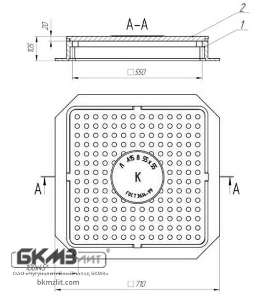В настоящее время ОАО «БКМЗлит» изготавливает чугунные люки квадратной формы типа Л (А15)-8-55×55 и С (В125)-8-55×55.